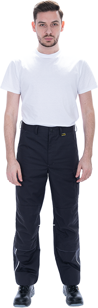 • световозвращающая двухсторонняя лента в виде канта под наколенником, сзади брюк в области подколенной ямки |