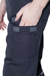 • 6 карманов: 2 боковых с наклонным входом, 2 накладных на задней половинке, 1 карман для инструментов на правом боковом шве, 1 накладной с клапаном на ленте контакт, с малым карманом на левом боковом шве